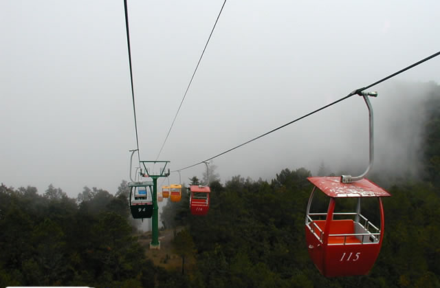 這種索道的工作原理是:一條無極鋼絲繩套在兩端的驅(qū)動(dòng)輪及迂回輪上,線路中間設(shè)有支架,其上裝有托索輪組或壓索輪組,依地勢(shì)變化將鋼絲繩托起或壓下。將吊椅(吊廂、吊籃)用固定抱索器等距離掛結(jié)在鋼絲繩上,驅(qū)動(dòng)輪帶動(dòng)鋼絲繩運(yùn)轉(zhuǎn),將吊椅(吊廂、吊籃)由起點(diǎn)帶到終點(diǎn),經(jīng)迂回輪到另一側(cè)后又回到起點(diǎn),如此循環(huán),實(shí)現(xiàn)運(yùn)送游客的目的。這種索道的特點(diǎn)是結(jié)構(gòu)簡(jiǎn)單、價(jià)格低廉、維護(hù)方便、目前是國內(nèi)使用最多的一種。